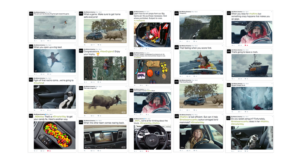 I got to live-tweet one of the most exciting and unpredictable Super Bowls ever (the Pats-Falcons overtime thriller), using GIFs from our spots to narrate the game and interact with fans, celebs, and other brands.