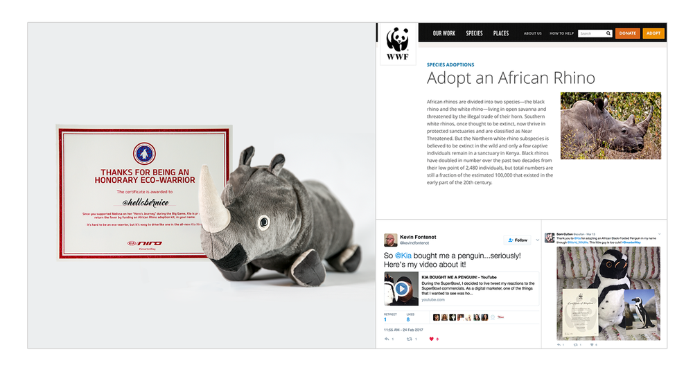 When people said gave the work love, we thanked them with a WWF eco-warrior adoption kit. featuring the rhino, penguin and whale from the spots. Folks seemed to dig it.